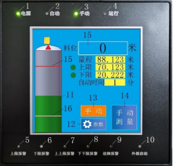 2:自動(dòng)指示燈,在自動(dòng)狀態(tài)下,按《自動(dòng)時(shí)間》間隔去自動(dòng)測(cè)量物料高度。
