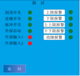 上電后系統(tǒng)對(duì)重錘系統(tǒng)進(jìn)行檢測(cè),無故障后進(jìn)入主界面。如果重錘有故障,下方會(huì)出現(xiàn)手動(dòng)進(jìn)入按鍵。按下后進(jìn)入《端口測(cè)試》界面,測(cè)試輸入輸出端口。